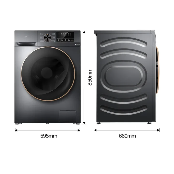 TCL WASH and DRY รุ่น WT11EPWDG มีดีไซน์ที่ทันสมัยด้วยสีเทาเข้ม เหมาะกับการตกแต่งภายในบ้านแบบร่วมสมัย ตัวเครื่องมีขนาดกะทัดรัด (กว้าง 595 มม. x ลึก 660 มม. x สูง 850 มม.) ทำให้ประหยัดพื้นที่ในการติดตั้ง